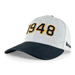 Low Profile Structured 1948 Felt Patch Cap Item#30646 This low-profile structured cap pairs a grey melange chino twill crown with a contrasting black bill for a clean, modern look. The front features bold double-layer felt patches showcasing Vermeer's established date, 1948, adding depth and texture. An embroidered Vermeer wordmark accents the wearer's left side, while the adjustable snapback closure ensures a comfortable, custom fit. |